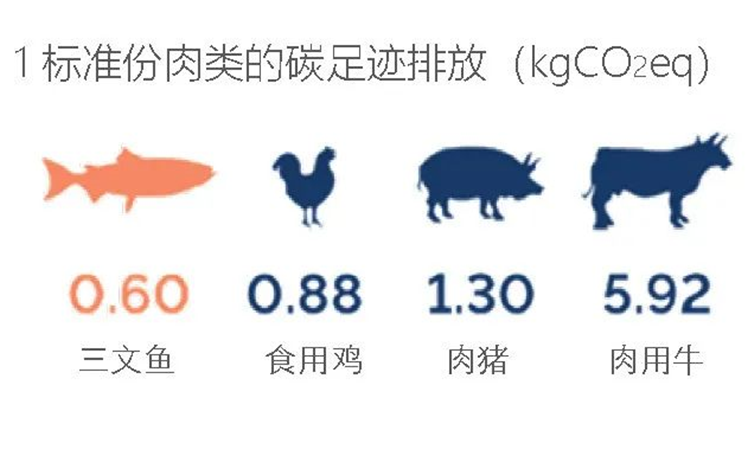 與牛肉和豬肉相比,三文魚的二氧化碳排放量較低。因此,相比其他養(yǎng)殖產(chǎn)業(yè),三文魚養(yǎng)殖更是一個資源節(jié)約型的養(yǎng)殖產(chǎn)業(yè)。