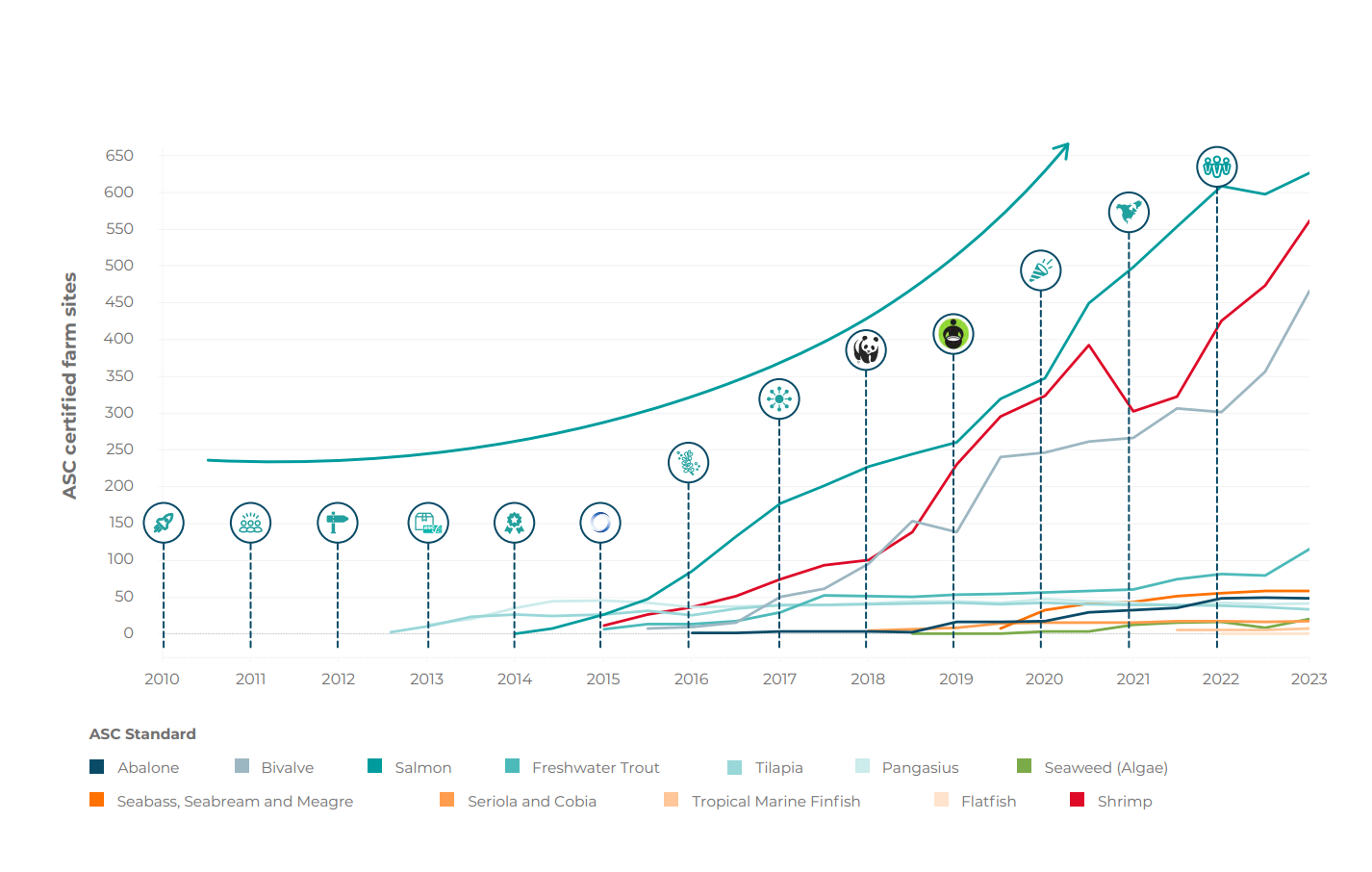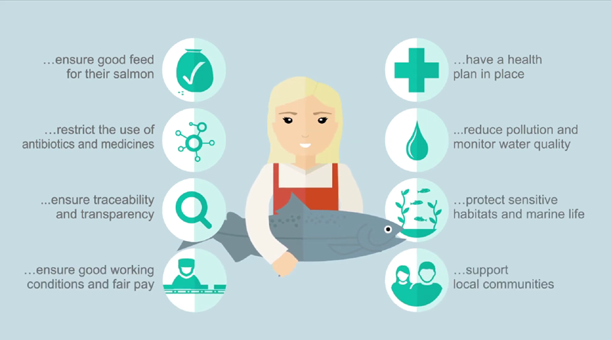 ASC 自成立以來一直與三文魚養(yǎng)殖者、貿(mào)易商和官方組織合作,并于 2012 年推出了三文魚標(biāo)準(zhǔn)。該標(biāo)準(zhǔn)要求經(jīng)過認(rèn)證的養(yǎng)殖場證明他們實(shí)行負(fù)責(zé)任的水產(chǎn)養(yǎng)殖,最大限度地減少對環(huán)境和社會的影響。