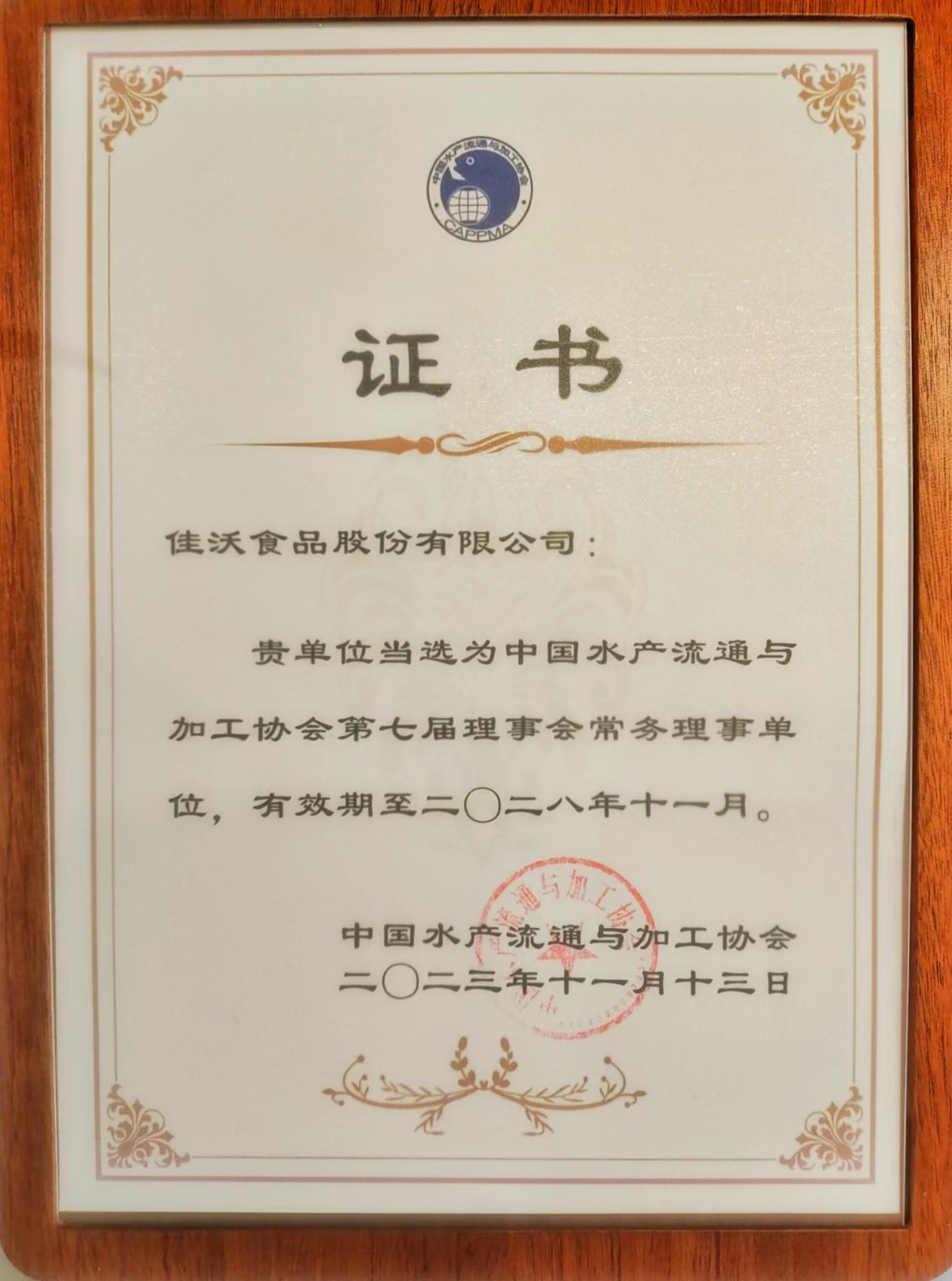 大會(huì)同期召開七屆一次理事會(huì),選舉產(chǎn)生新一屆會(huì)長、副會(huì)長、常務(wù)理事、秘書長。佳沃食品受邀參會(huì),并當(dāng)選中國水產(chǎn)流通與加工協(xié)會(huì)第七屆理事會(huì)常務(wù)理事單位。